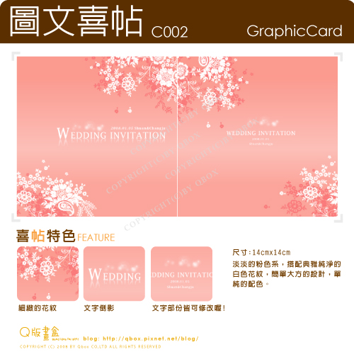 喜帖特色:1.細緻的花紋 2.文字倒影 3.文字皆可修改喔
